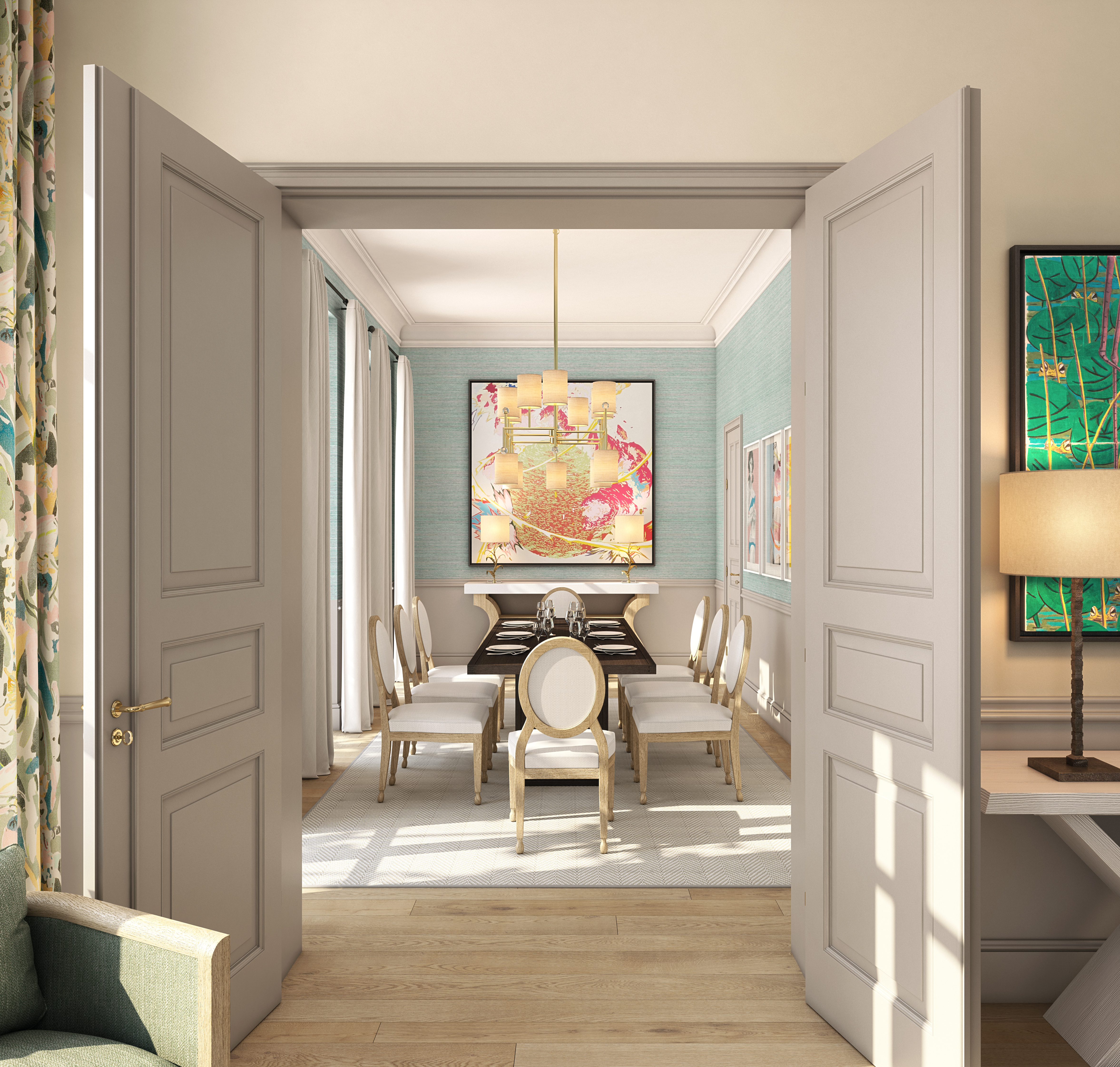 На вилле представлены произведения искусства, выбранные по рекомендации компании “Douglas Kunstberatung Gmbh”. Здесь можно увидеть картину «The Perroquet» Роберта Индианы (1971) , идеально подходящую к пастельным тонам гостиной, и «Aquarelle Bleu Aqua» Михаэля Пфроммера (2018), отражающую радость жизни. Villa Sainte-Anne – символ лета, проведенного в поэтической и утонченной атмосфере.